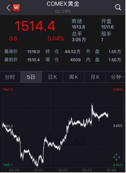 原来近期美国经济数据爆冷,引发了市场对经济衰退的担忧。随着避险情绪升温,10月1日以来,国际黄金期货价格已经连续上涨3天,从最低的1465美元/盎司一度上涨到1525美元/盎司,区间最大涨幅达4%!