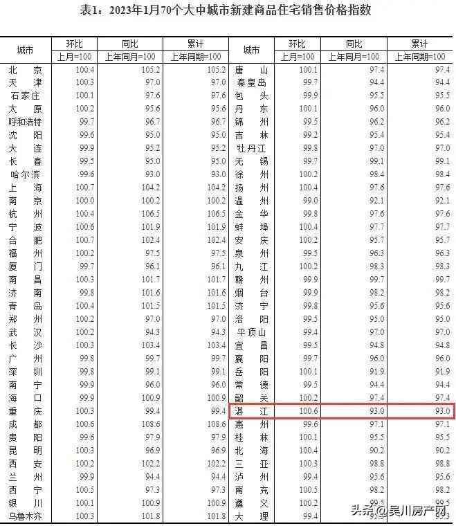 2023年1月,湛江新房价格环比上涨0.6%
