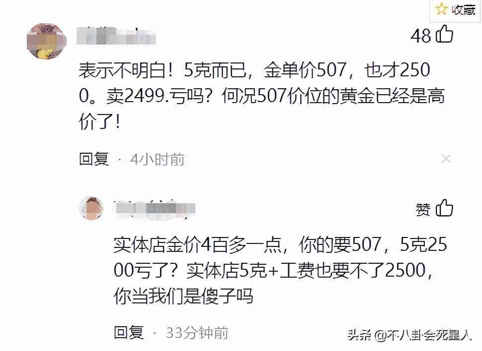 有不少明眼人看出了问题,一个5克的镯子,按今年的最高金价也就才2500左右,怎么就值9999呢,得了便宜还卖乖,真是可笑又可气。