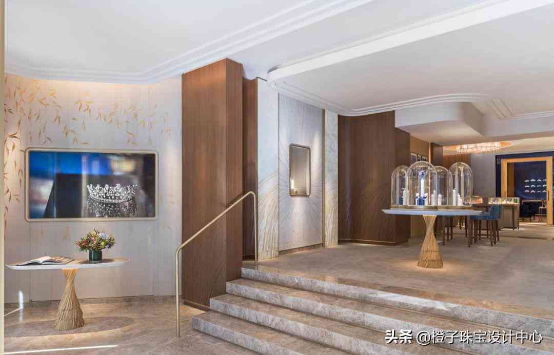 旗舰店硬装以珍珠、灰褐和古铜色调交相辉映,软装则以闪光蓝呈现出玻璃般的透明质感。微妙的光影借助镜面反射,将空间视觉效果无限放大,更衬托出珠宝的璀璨光芒。