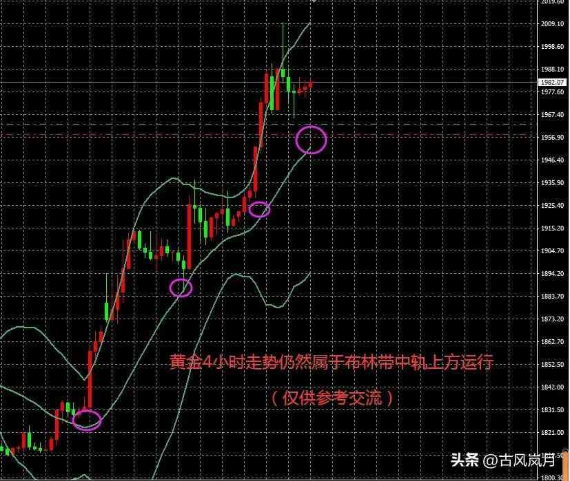二,技术面,1,黄金,我昨天提到行情很可能冲击2000-2015压力区域后展开回落,短线如果不做空,可以尝试回撤1965附近后短多,昨天最低刚好回撤此位置附近,当前拉升上行到1985附近。今天来说个人短线倾向1970附近短多,止损昨天低点附近1965 目标1985-1990附近,行情在4小时级别布林带中轨上方运行,只要行情不破此位置多头依然存在。如果想尝试做空的话则需要等到1995-2000附近后尝试。行情如果突破2000-2015压力区域行情后面大概率要去冲击2050一线。在此之前今天个人倾向区间宽幅震荡的概率大2000-1960区间。