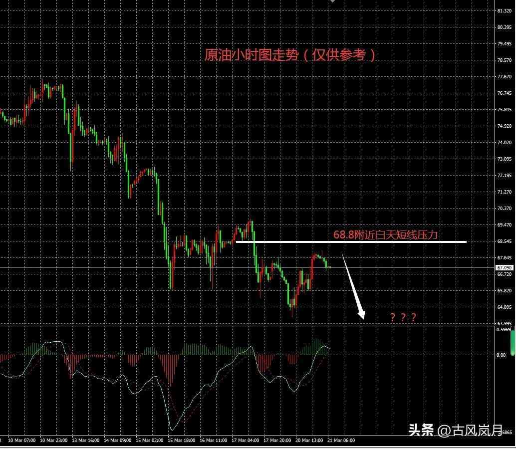2,原油市场,昨天我提到行情大概率要到65甚至更低位置,昨天到了。今天思路我自己先保留70-65.5-63.5区间运行的可能,白天行情有可能先继续反弹,同样也存在短多机会。我个人倾向行情晚上如果到69.3-70区间开空。激进的下午可以考虑行情反弹到68.2附近先空,止损68.8 下看67-66.2附近。因为我自己是日内短线为主,主要做好盈亏比例,止损比例设置的不大。所以更多的需要根据行情走势我们实时决定