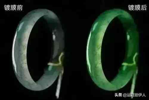 在无色或浅色翡翠成品的表面镀上一层绿色或其他颜色的透明胶膜。