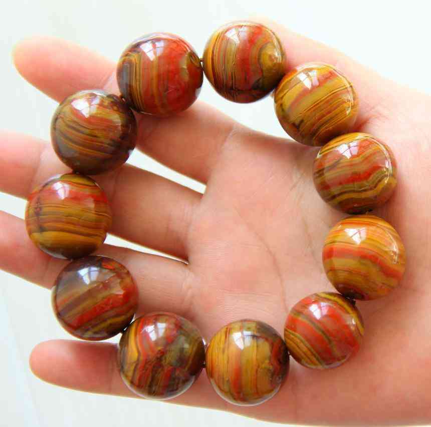 战国红玛瑙指近年开采于辽宁朝阳和河北宣化等地,战国红,黄为尊,红为贵,色多而不杂谓之君臣分明,此曰“君臣之纲”。缟玟幻化无常,水线穿梭其中,此曰“无常之道”。光华内敛,华而不张,乃玛瑙中君子者也。