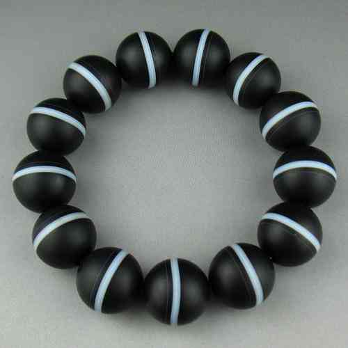 药师珠为缠丝玛瑙类,又称为圆线珠,每颗药师珠的纹路是天然形成的,显著特征为黑色珠体中间缠绕一白线,或者与这样特征较为接近得都称之为“药师珠”。属于天珠族群的一种。