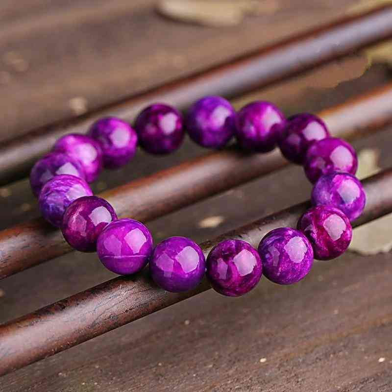 舒俱来,学名钠锂大隅石,主要成分为苏纪石。外观呈各种不透明的深浅紫与紫红色交织,甚或深至黑色,皇家紫为最优质的颜色,长久佩戴能令颜色的光彩更亮丽。层次不同的美丽紫色,加上深浅不同变化,让舒俱来蒙上一层神秘冷艳的色彩,它是一种非常特殊的宝石。