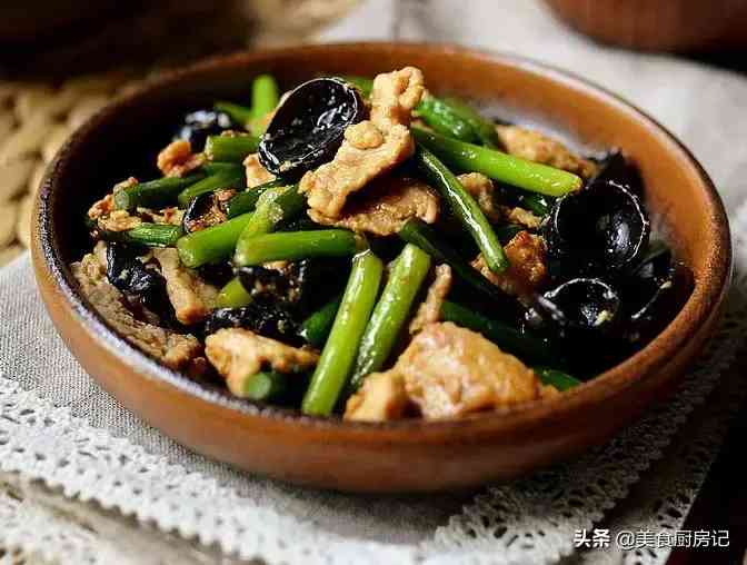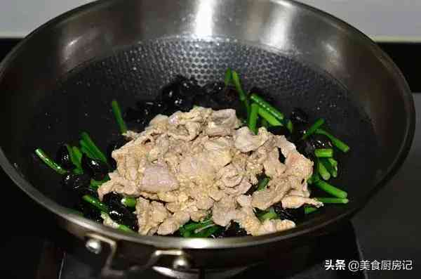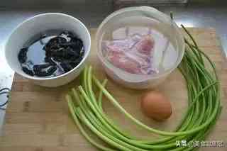 食材:猪里脊250g,蒜苔1小把,黑木耳适量,鸡蛋1个,生粉1勺,料酒1勺