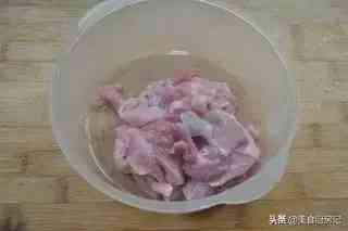 1、猪里脊洗净切成薄片。