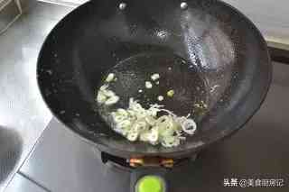 8、锅中留底油,放葱丝姜丝炒香后,倒入蒜苔翻炒。