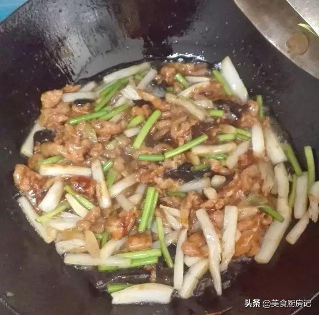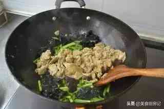10、倒入过油炒好的肉片。