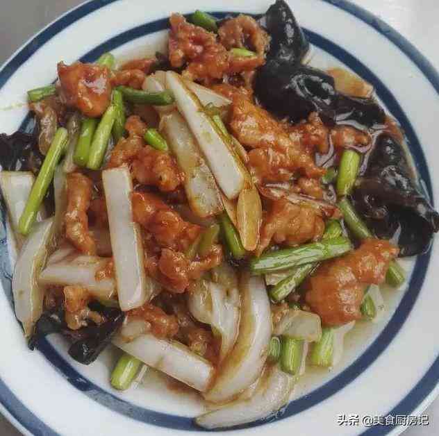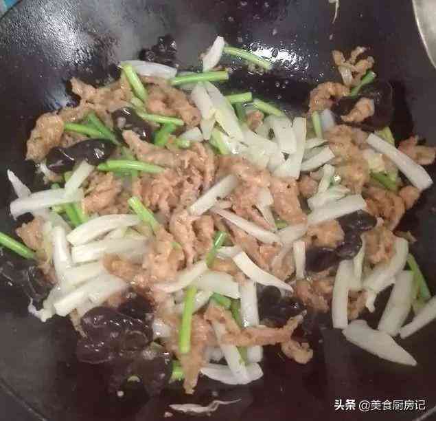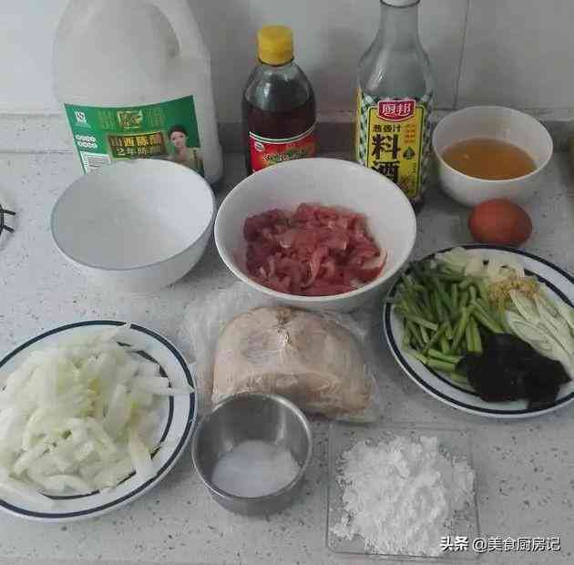食材:里脊肉适量、蒜薹适量、木耳适量、鸡蛋适量、葱适量、蒜适量、淀粉适量、生抽适量、老抽适量、盐和鸡精适量、料酒适量、花椒粉适量、胡椒粉适量。