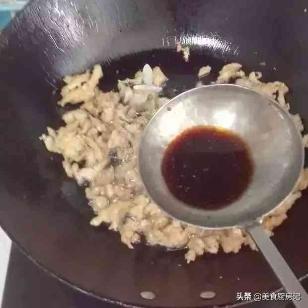 4、芡汁要老抽上色,汁子要适量,过多过少都不可以,多了菜品太水,少了太干,不紧汁亮油。