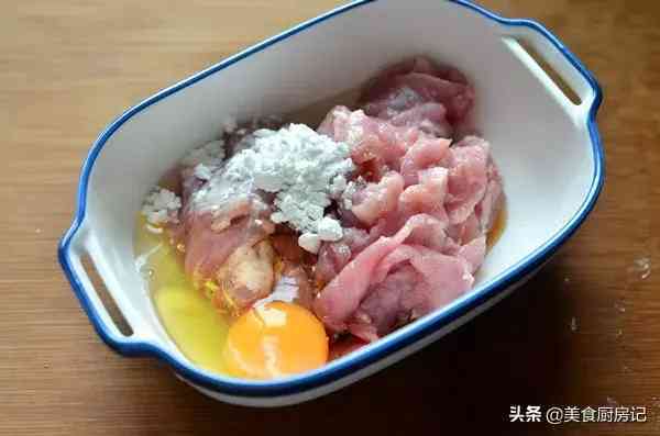 主料:猪瘦肉三两(猪后座或里脊肉),鸡蛋一个(25-30克),粉面30克。