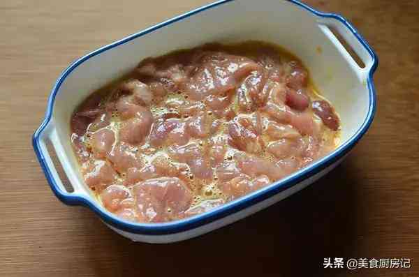 2、用鸡蛋和粉面将肉片抓匀,静止15分钟左右。