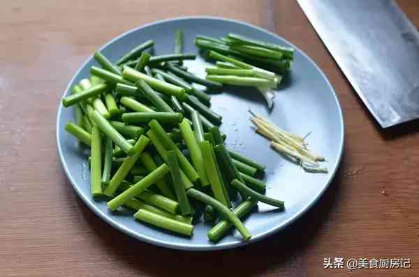 5、蒜苔洗净去根后切段,小葱切段姜切丝。