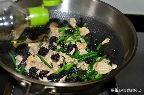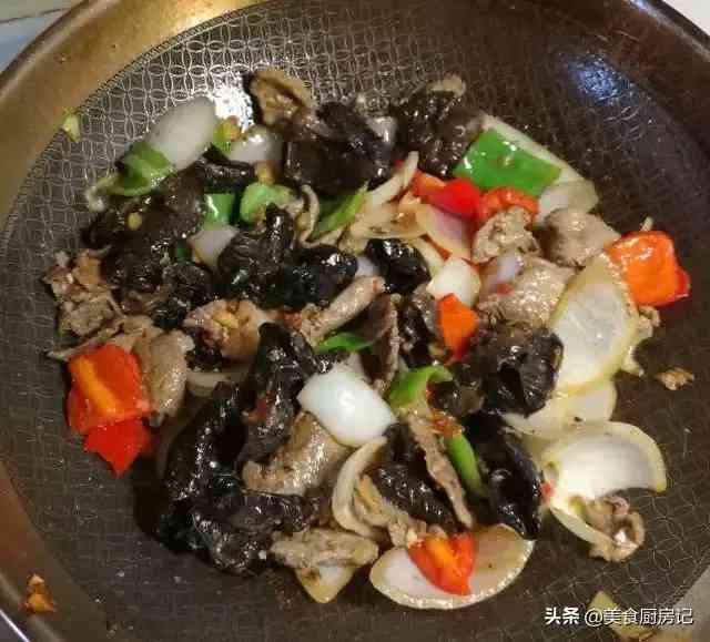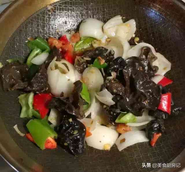 9、加入木耳快速炒匀。