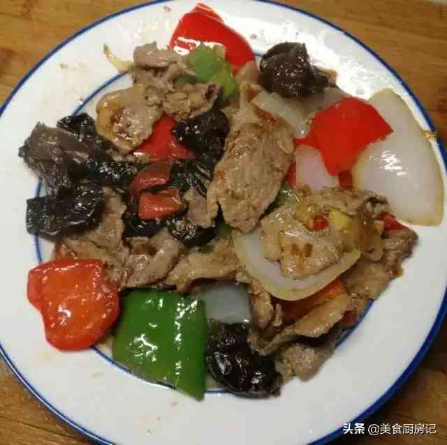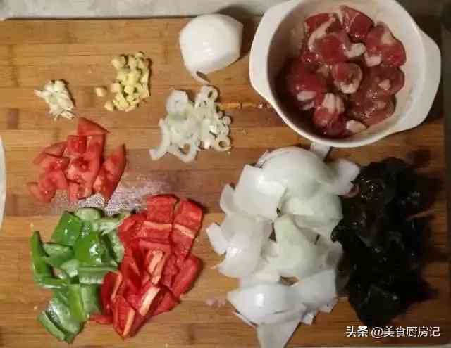 食材:羊肉200克、青红椒各1个、葱1段、蒜3瓣、生姜1小块、洋葱1个、酱油10克、黑木耳若干。