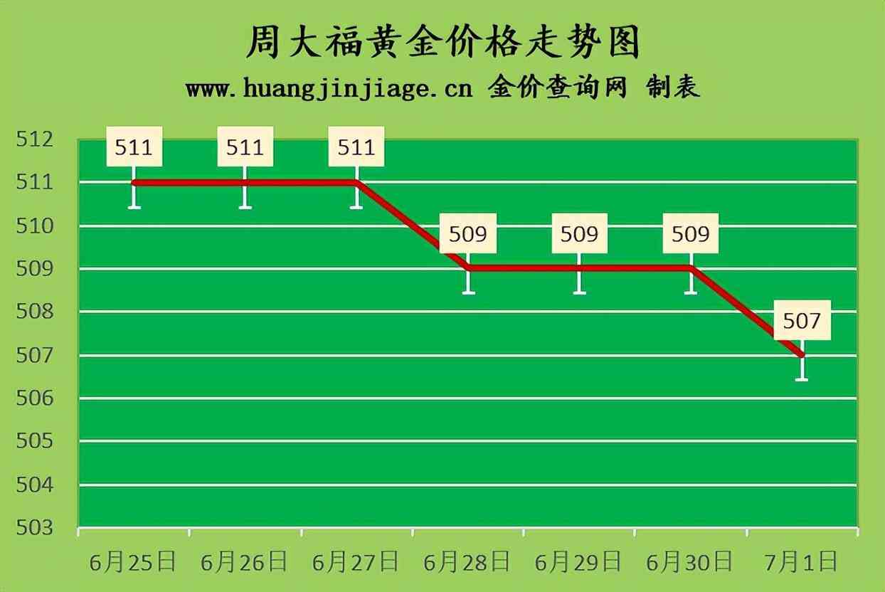 周大福黄金价格507元/克(跌2元),六福黄金价格507元/克(跌2元),周生生黄金价格505元/克(跌4元),金至尊金价507元/克(跌2元),谢瑞麟金价506元/克(跌3元),老凤祥黄金价格508元/克(跌3元),老庙黄金价格505元/克(跌3元),菜百金价505元/克(持平),周大生金价507元/克(跌2元),中国黄金价格505元(跌4元),金大福金价502元/克(跌2元),潮宏基金价507元/克(跌2元),周六福黄金价格508元/克(跌2元)。