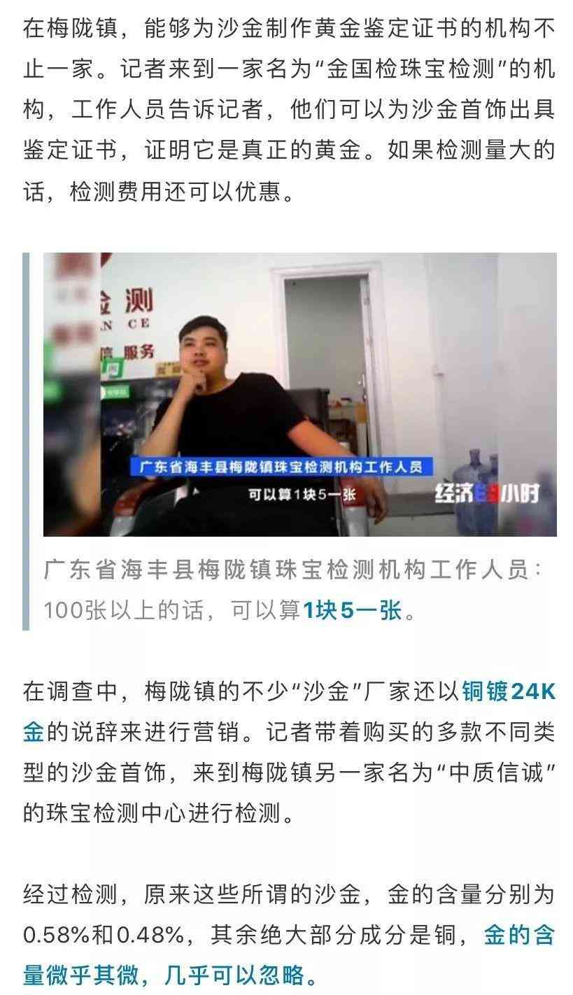 广东省海丰县首饰厂家:你去外面卖,当黄金卖也行。有人就说沙金是黄金,卖几百块钱。