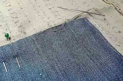 2:选择比较厚的牛仔布做盒底,把四边缝一下。