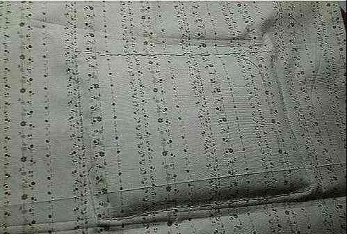 10:如所折痕迹缝制,要注意线的横平竖直。所以我的内衬布选择了定位花型的布,这样比较好控线。