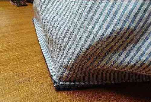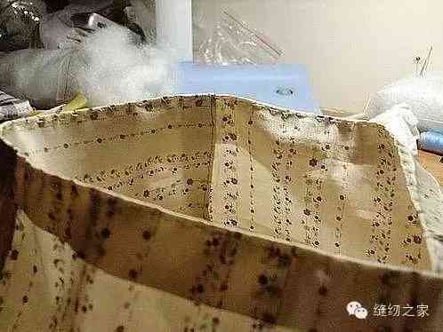 4:当三面都缝制好后,可以将剪裁合适的垫板和辅棉装入了,辅棉贴内衬那块布放置,这样里面以后就是软绵绵的了。