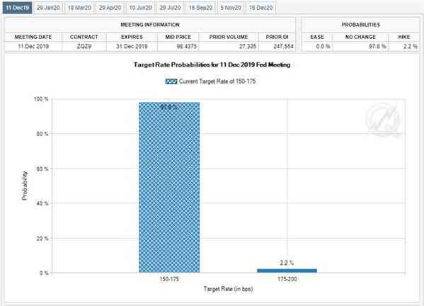 联邦基金利率期货显示:有超过90%概率,联邦公开市场委员会将在其2019年的最后一次会议维持基准利率不变,但围绕“阶段”贸易协定的疑虑可能促美联储在全球经济增长前景疲软的情况下,进一步刺激经济。