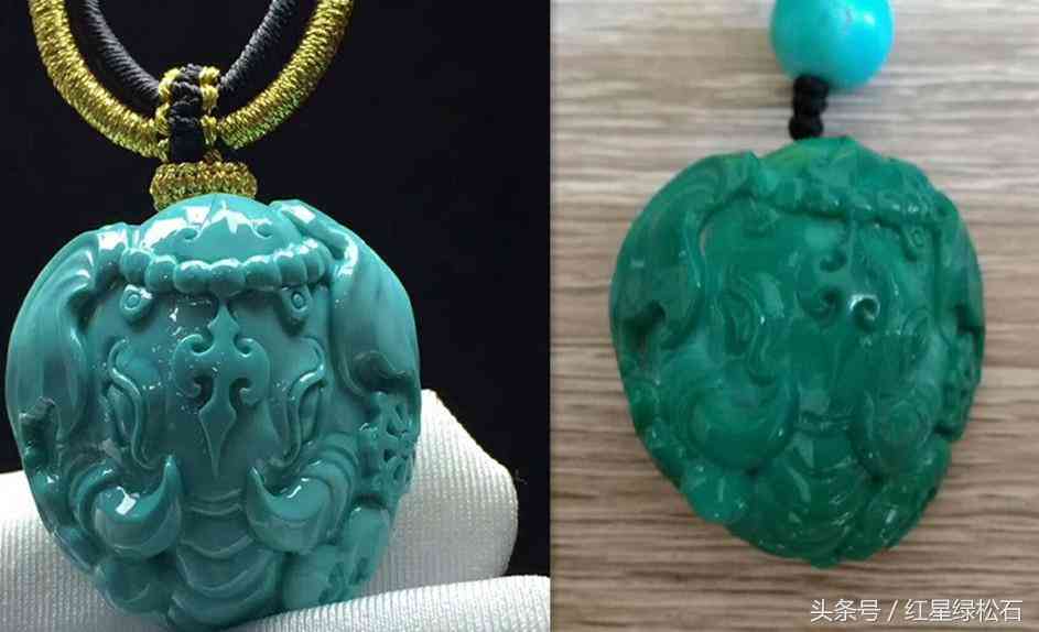 据介绍,这种高仿的赝品“绿松石”视觉上几乎无法分辩与真品的区别,并具备入水变色、盘玩变色的特征!事实真的是这样嘛?我们来看看原矿绿松石与赝品盘玩后的对比照片就明白了……