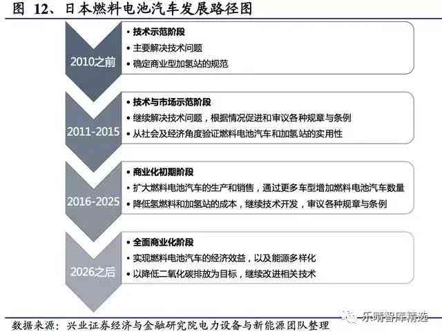 日本是全球燃料电池汽车发展最为领先的国家,早在2004年,日本在《国家新产业创新战略》中就将燃料电池列为国家重点推进的七大新兴战略产业之首,2010年日本燃料电池商业化协会制定了日本燃料电池汽车和加氢站推广路线图和目标,规划在2020年前拥有4万辆氢燃料电池汽车上路。