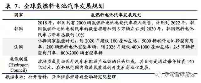 除中日外,韩国、法国等国家也重视氢能源汽车的发展,韩国规划到2022年燃料电池汽车数量达到8万辆,法国则规划到2020年拥有5000辆燃料电池轻型商用车,200辆重型车辆。