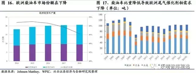 由于全球各国对尾气排放的标准不断提高,单车用铂量也将相应增加以处理更多的有害物质,这将在一定程度上对冲柴油车比重的下降。