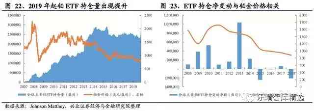 ETF持仓净变动与铂金价格关系较高,持仓量大幅增长时期会推高铂金价格,而当铂金价格持续下跌,持仓净流出较多后,ETF持仓量或将见底。