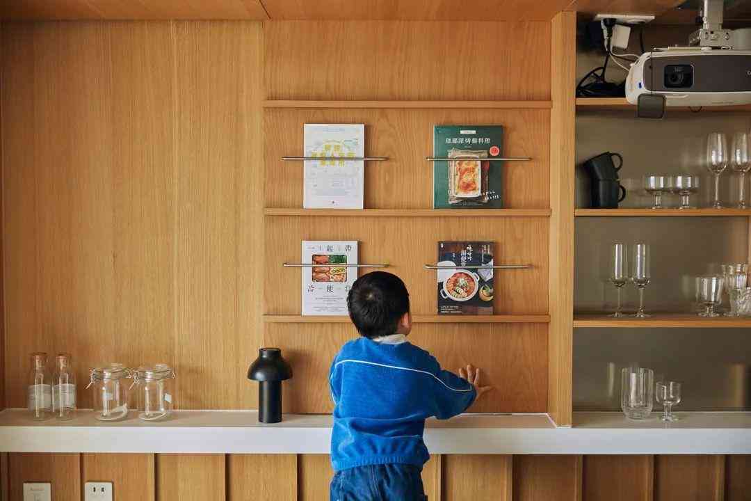 室内窗采用推拉设计,书本、菜谱增添随意氛围。