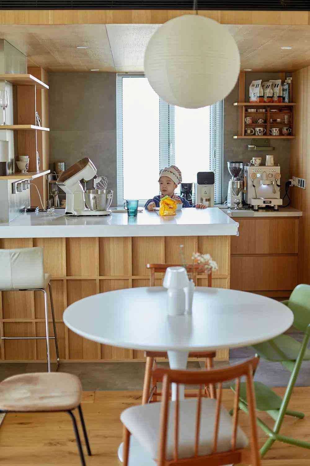 • 橱柜外延至餐厅,成为西厨区,扩大储物空间的同时,喜欢研究烘焙、咖啡的lulu有了施展拳脚地方;