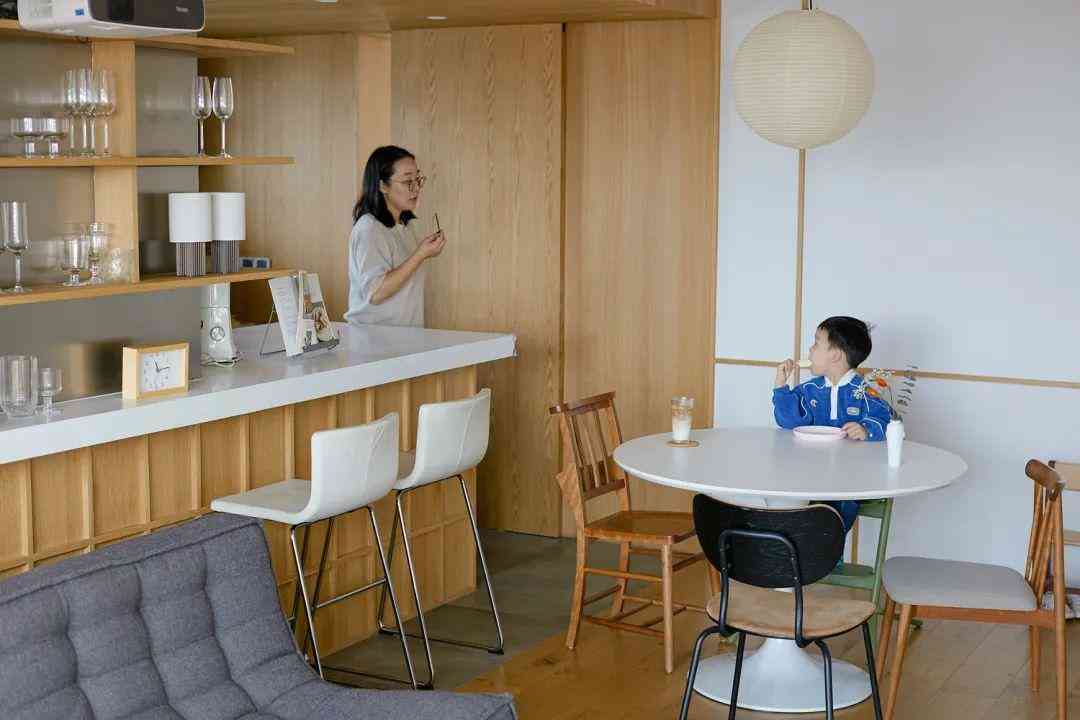 水吧台对面是宽大的岛台,全家一起备菜都没问题,亲子活动常常围绕岛台展开,大饼小朋友才4岁,厨龄已经1年了。