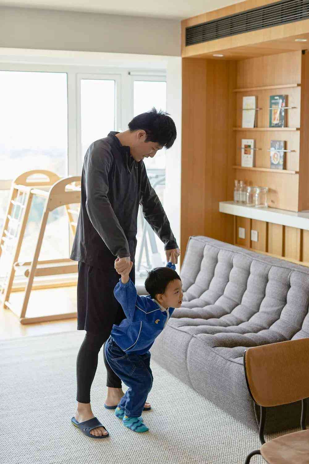 为了方便孩子跑来跑去,客厅没有茶几,亲子活动空间宽敞,家里总是充满欢声笑语。