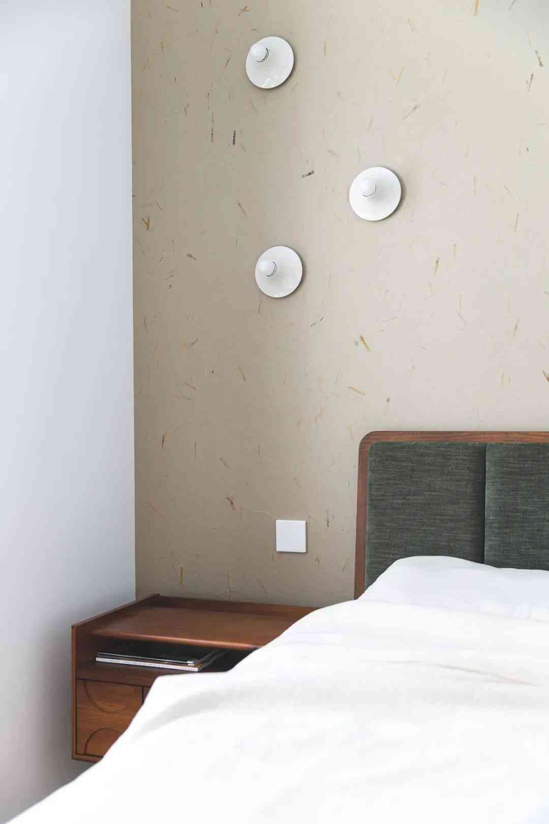 植物纤维壁布表面比较粗糙,肌理感强,仿佛会呼吸,给卧室增添了几分天然质朴的感觉。