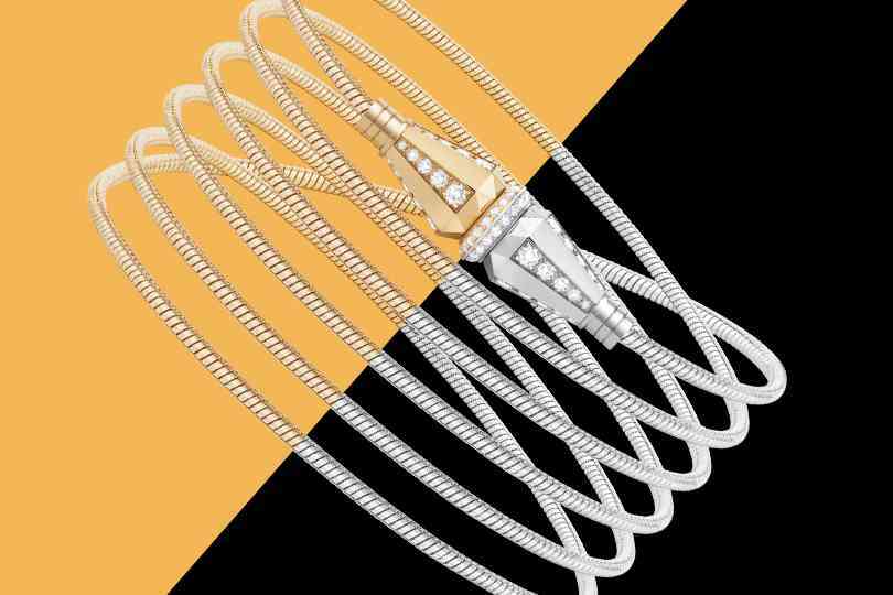 Jack de Boucheron系列将金色链条与珠宝扣完美结合,极致柔软的链条如同灵动的音频线,最特别的是隐藏式的链扣设计,就像音频线的插头般,通过它就能将不同的手链相串来改变长度。所以你手头上的手链足够多的话,你甚至可以把它们拼成一条项链。
