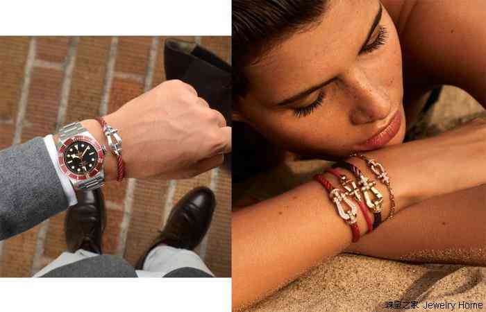 FRED的品牌创始人Fred Samuel的长子是一位帆船运动冠军,他用航海的帆船绳缆缠绕为手链送给爱妻,于是有了款Force 10手链。其编织工艺都完全遵循17世纪最古老的航海缆绳的编制方式,不仅耐用而且相当美观。这款手链从1966年推出至今已经风靡全球,帆船绳子搭配K金,这种极具反差感的搭配也是满少见的。