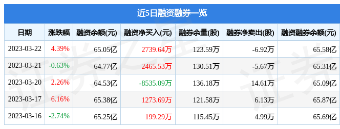 海康威视融资融券信息显示,融资方面,当日融资买入1.77亿元,融资偿还1.49亿元,融资净买入2739.64万元。融券方面,融券卖出27.63万股,融券偿还34.55万股,融券余量123.59万股,融券余额5289.72万元。融资融券余额65.58亿元。近5日融资融券数据一览见下表: