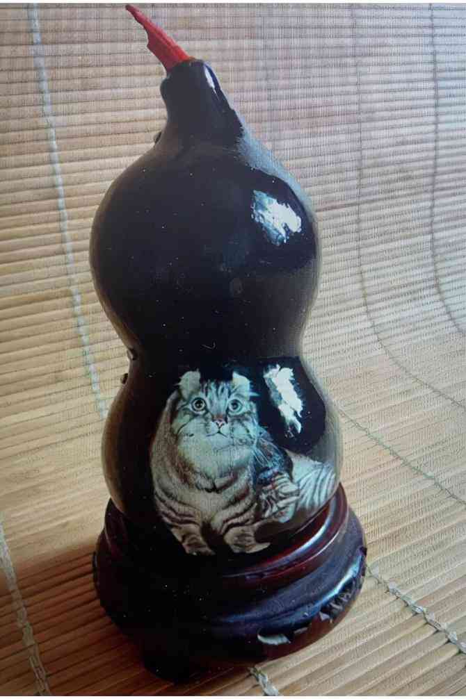 彩绘葫芦是在刮光外皮的葫芦上,以工笔手法画人物或花草鸟兽,其色彩或艳丽或淡雅,彩绘后的葫芦上再涂上一层透明清油,使之通体光亮,圆润可爱。