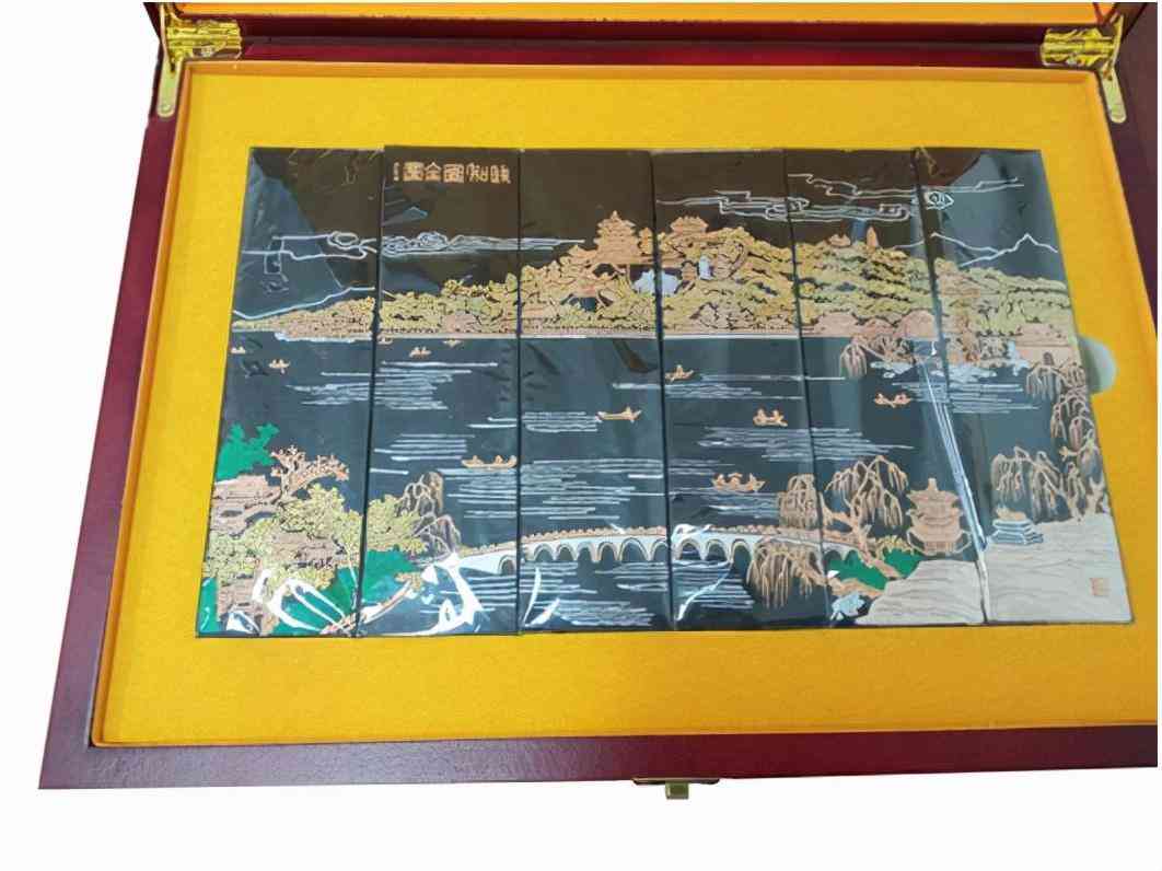 图样选自颐和园佛香阁昆明湖全景,采用纸印刷工艺,触感良好。夏令之物,引来丝丝清凉。局部勾金线条,手工裱合及扫金工艺,颜色鲜亮。古朴雅致,亦是造型美观的艺术装饰品。