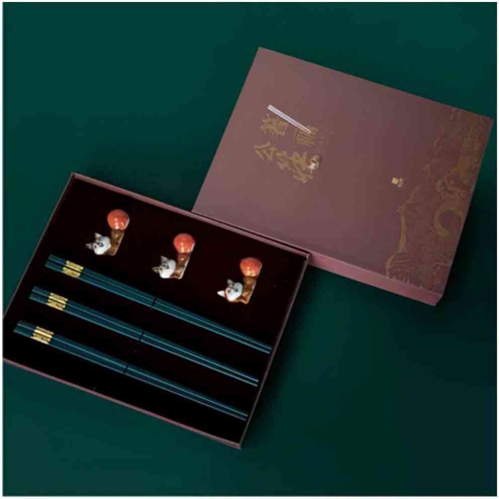 龙凤呈祥自古都是婚庆美满的吉祥语,此款筷子包装采用故宫大婚喜服图案,产品结合了传统工艺,是结婚送新人的伴手礼。