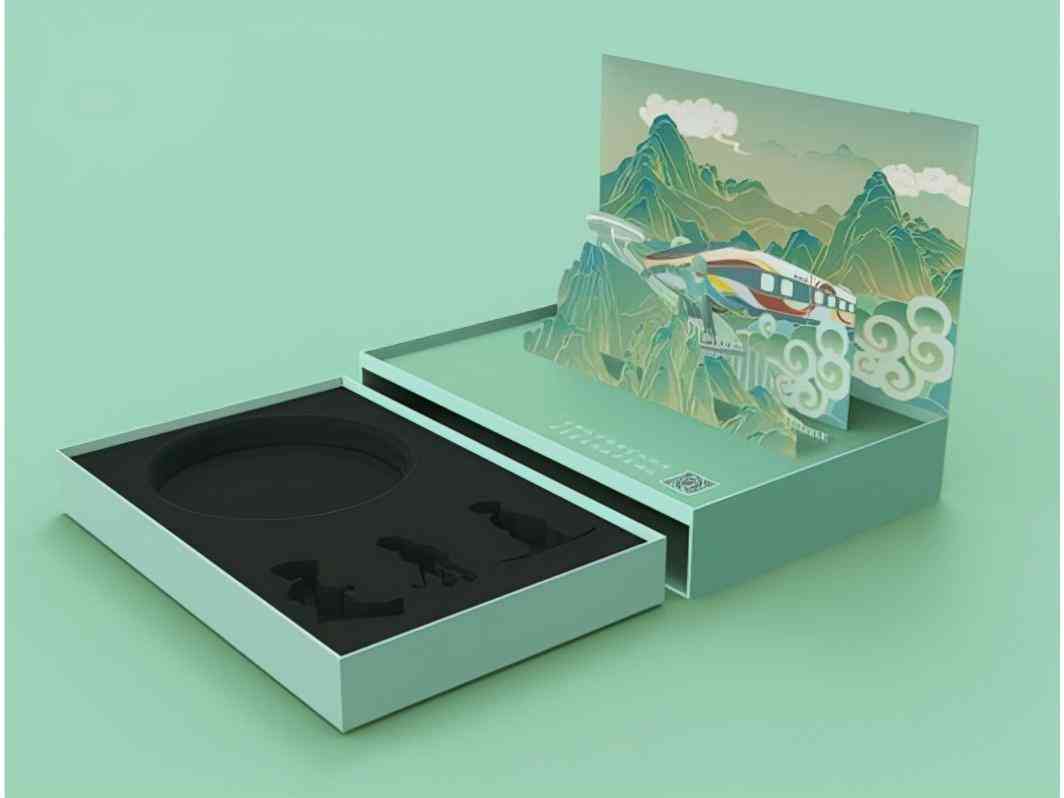 普洱茶与潮玩的结合使传统文化和竞技体育碰撞出新的火花,礼盒采用镀金镀银的工艺展现高端大气的形象,京张线高铁的图案代表北京冬奥会,冰雪运动员的形象生动可爱,为最可爱的中国健儿加油!