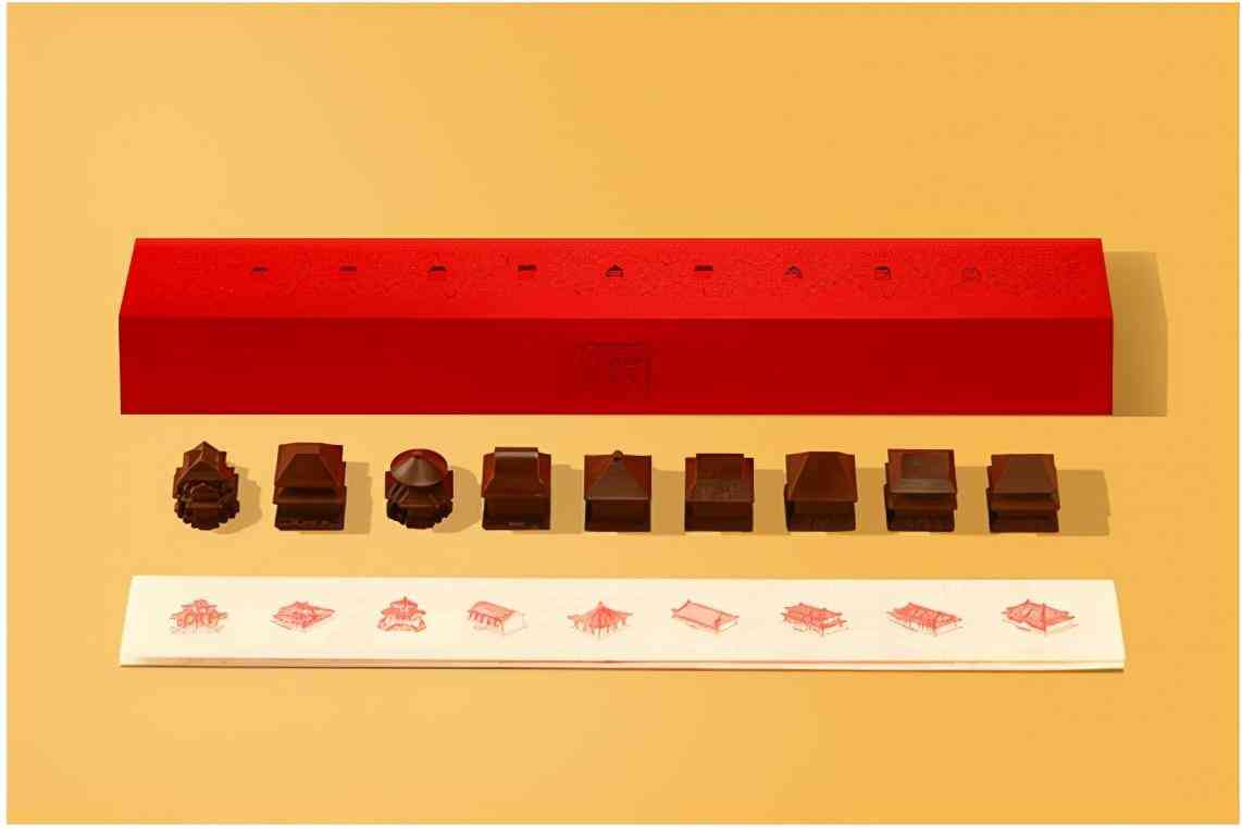 以紫禁城建筑艺术为设计元素,将九座宫殿微缩于盈寸大小,内呈九枚,栩栩如生,立体型制,精巧雅致,甄选品质可可原料,两款可可经典口味,匠心手作,慢工精雕,舌尖品味醇正自然味道,浓香馥郁,入口难忘。
