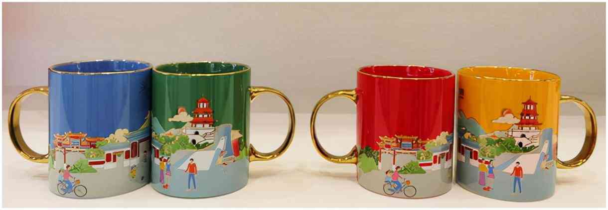 采用烧制、印花的工艺,陶瓷材质,以首钢八景为设计灵感,设计出色彩明艳的首钢园主题系列陶瓷杯。
