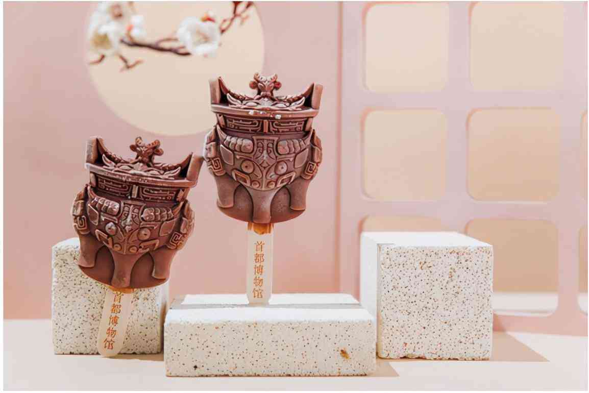 该文创冰品由首都博物馆及之间味道携手推出,冰品保留了其独特精致的牛头兽面纹,精雕细刻线条流畅有力,让国宝在雪糕上也具有高审美艺术体现,让文物“活起来”“走出去”“有滋味”。