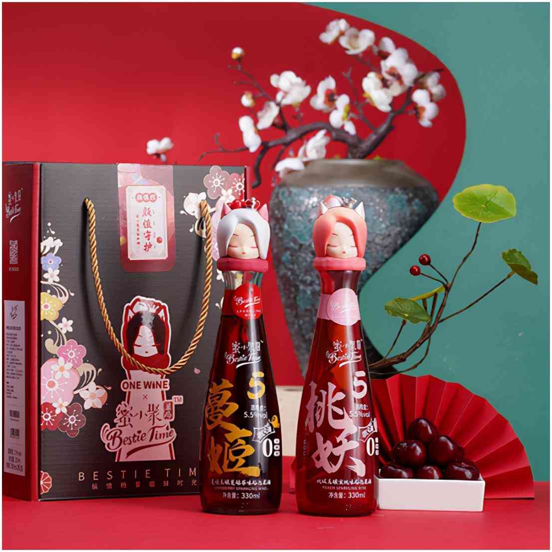 故宫文创酒,用时尚的方式把传统的文化重新流行起来。有五款一套,瓶上印有俏皮生动的话语,深受年轻人的喜欢。