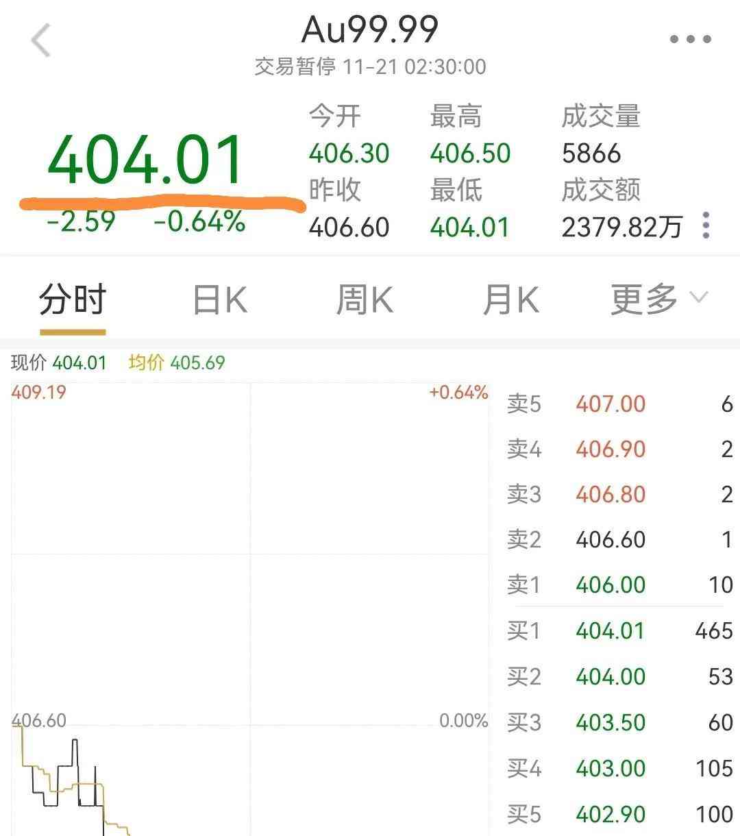 今天上海金价404元/克。