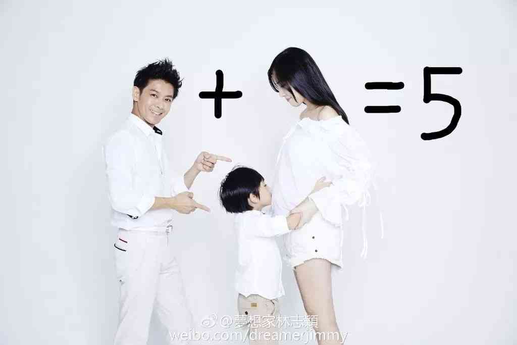 那林志颖的这串 1 + ?=5,不免让人的脑子拐了个弯,这是 1 加几个人才能变成 5,妻子陈若仪的肚子里又是几个宝宝。
